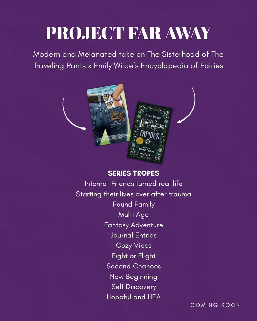 Project Far Away was born, a vague concept about four bookish friends who experience the type of tragedy, stress and disappointment that catapults them into a fantastical adventure that ends in hope, healing and HEA.